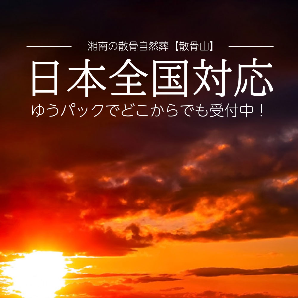 | 【散骨山の散骨自然葬】は、日本全国対応しております。お近くの郵便局からゆうパックでご遺骨をお送りいただくことで、粉骨~散骨~証明書の発行まで、すべて一貫して弊社で執り行わせていただいております。散骨当日の様子も撮影し、写真をお送りいたしますので、ご確認いただくことができます。【散骨山】では、「山林散骨」および「海洋散骨」「手元供養」をお取扱いしております。墓じまいのあとに、ご遺骨を弊社までお送りいただけましたら、責任をもって対応させていただきます。墓じまいは石材店に連絡すれば、すぐに可能です。エリア別の石材店マップを掲載しておりますので、よろしければご活用ください。 |